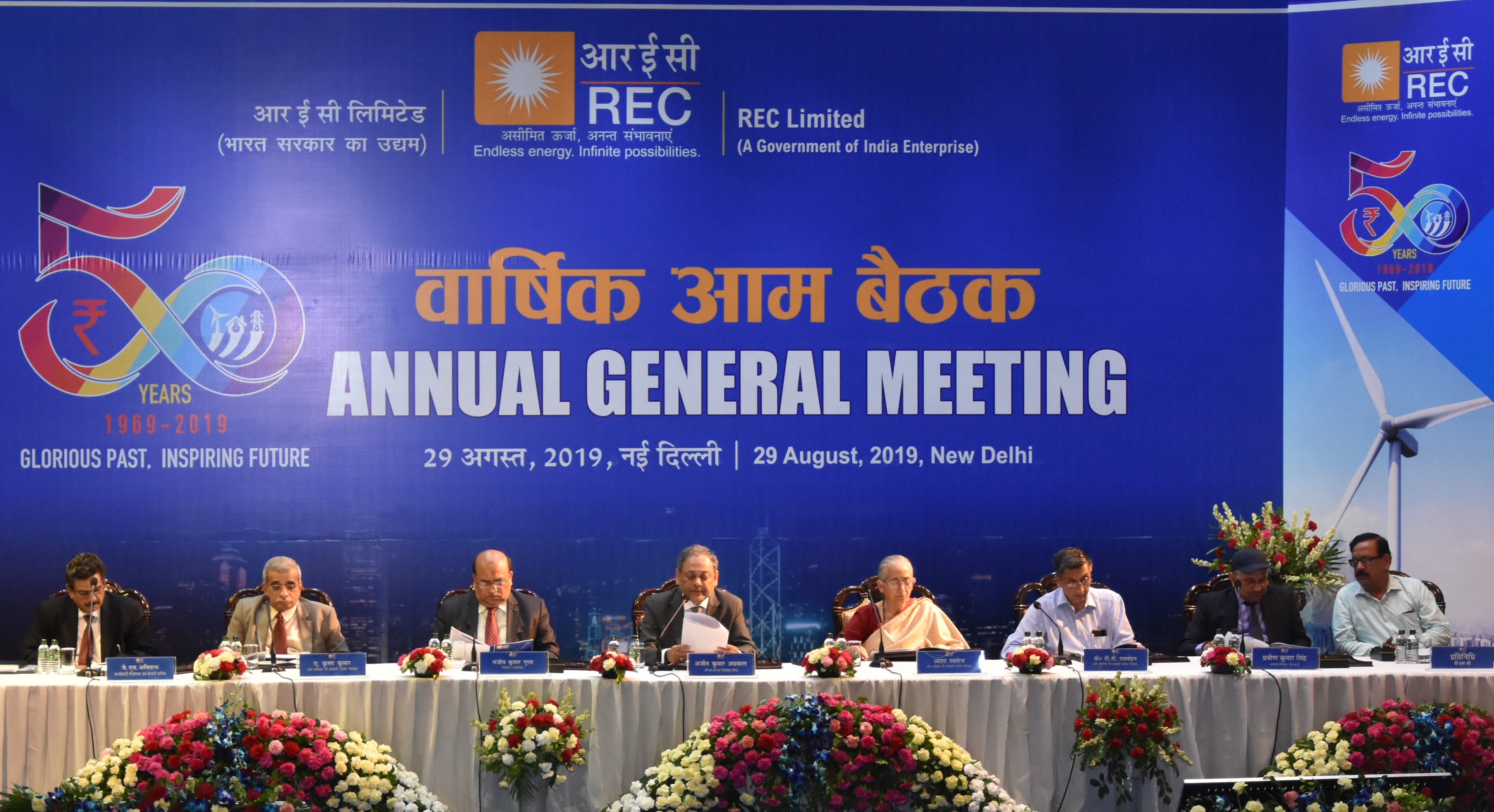 आरईसी लिमिटेड की 50वीं वार्षिक आम बैठक नई दिल्ली में 29 अगस्त, 2019 को आयोजित की गई थी। श्री अजीत कुमार अग्रवाल, अध्यक्ष एवं प्रबंध निदेशक, आरईसी ने बैठक में शेयरधारकों को संबोधित करते हुए कहा कि कंपनी नवीकरणीय ऊर्जा परियोजनाओं के वित्तपोषण और विद्युत मंत्रालय के अग्रणी कार्यक्रमों पर जोर दे रही है।