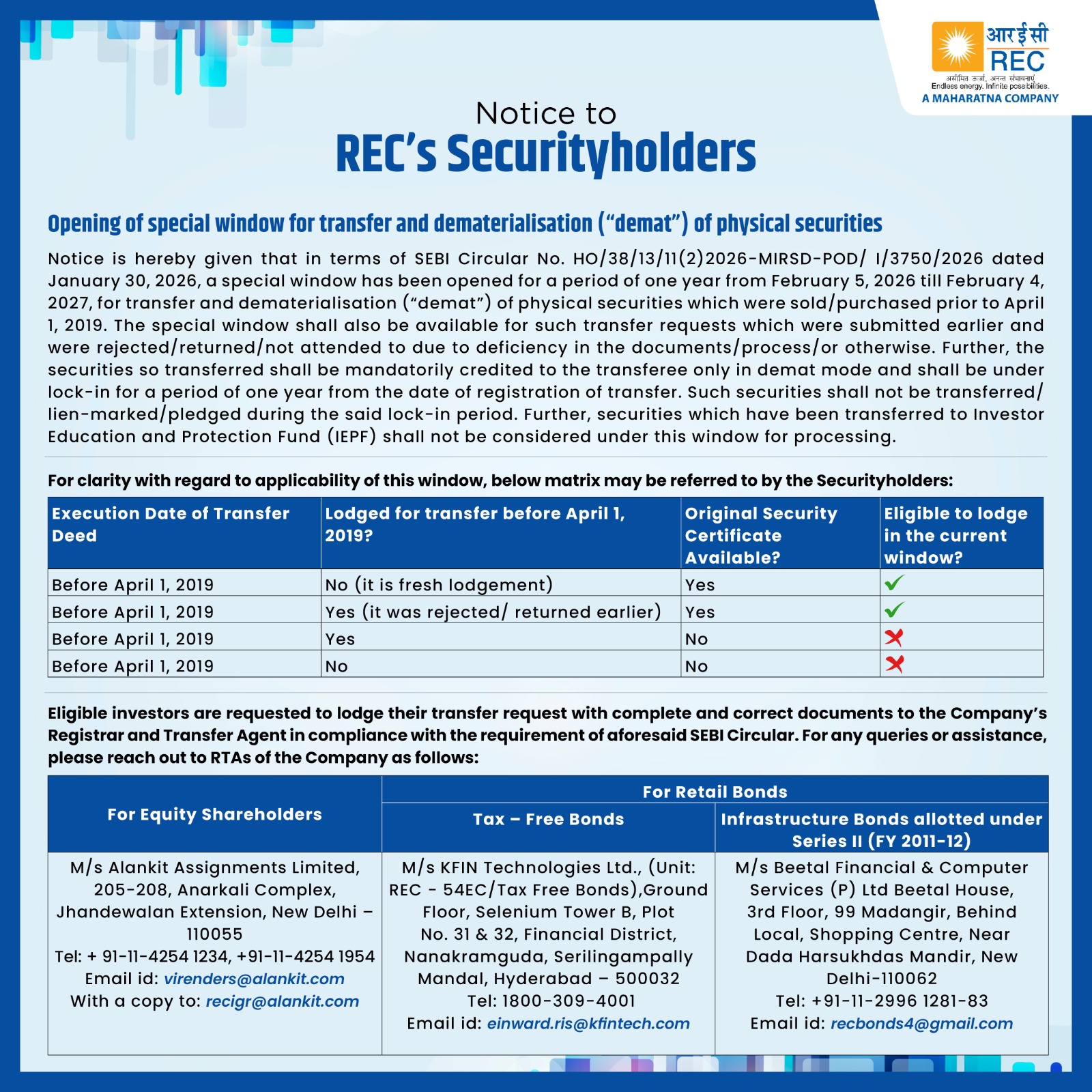 आरईसी लिमिटेड के निदेशक मंडल में परिवर्तन के संबंध में सूचना(947 KB) PDF